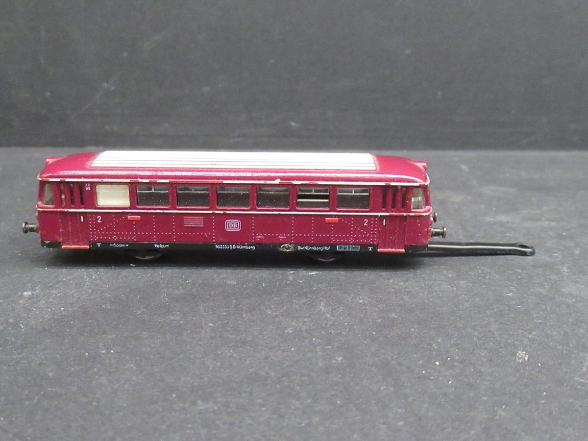 Schienenbusbeiwagen VB 98 der DB in roter Farbgebung.