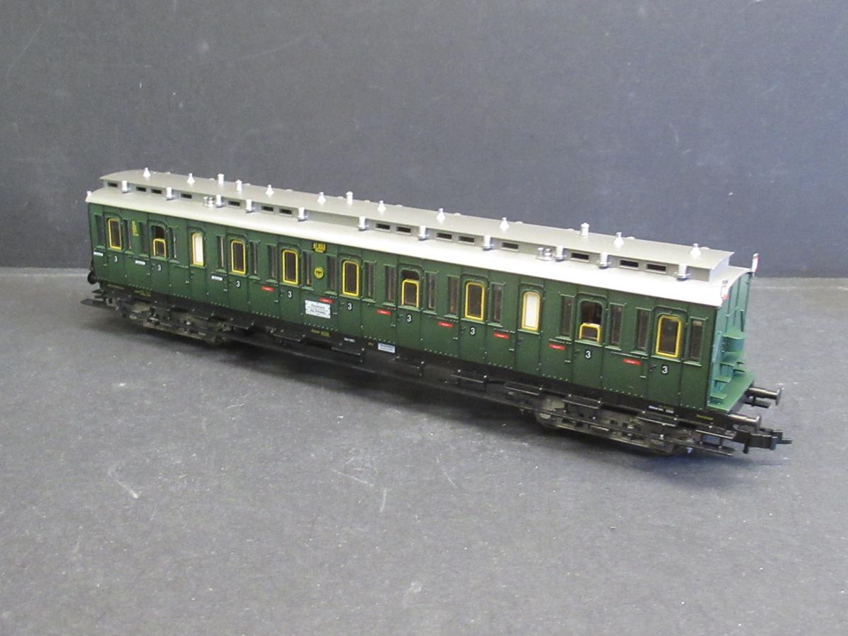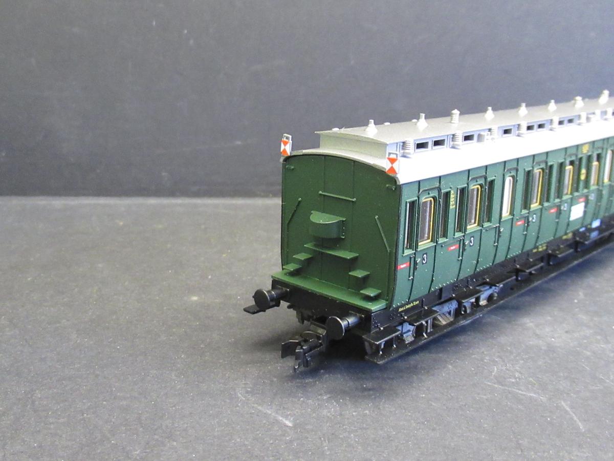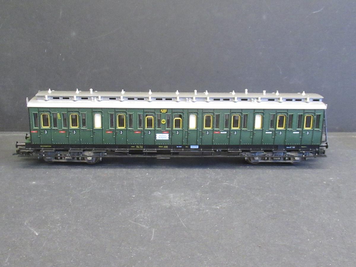 4-achsige Abteilwagen 3. Klasse der DRG in grüner Farbgebung.