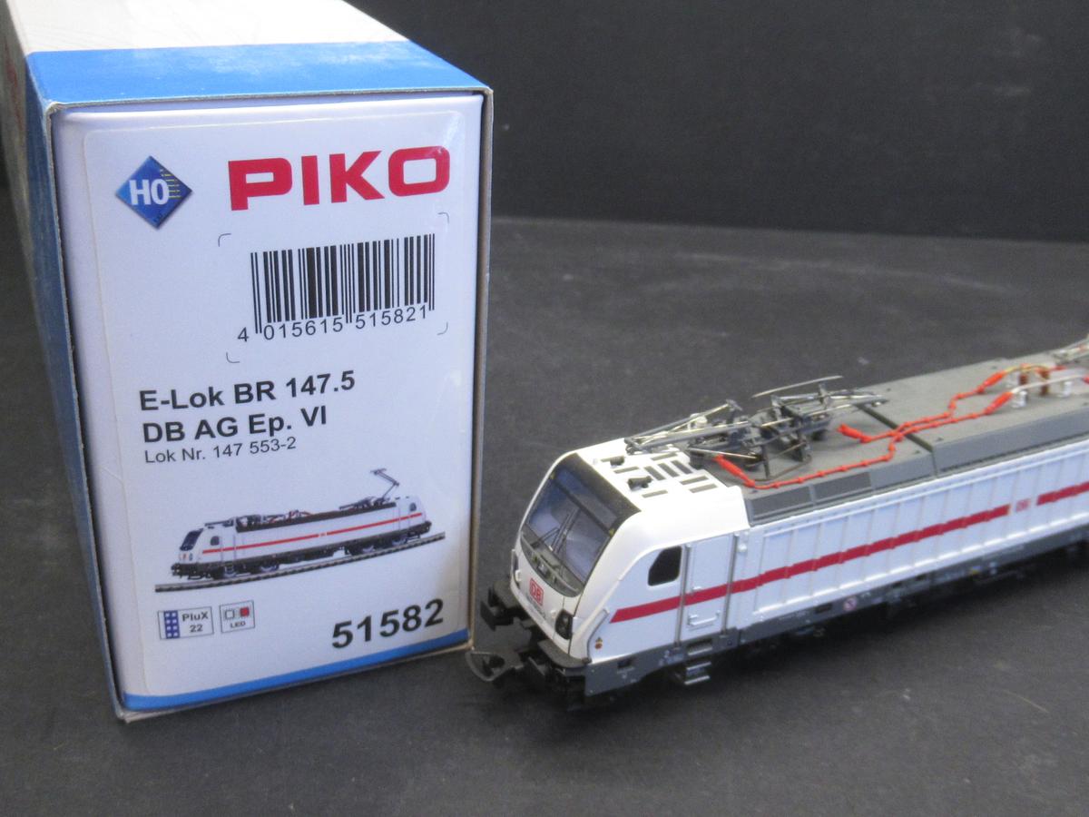 Das PIKO Modell der Baureihe 147.5 des Geschäftsbereiches Fernverkehr der DB AG überzeugt u.a. durch eine exakte Wiedergabe aller relevanten Details ihrer Vorbildmaschine wie Fenster, Pufferbohlen, Steckdosen. Das Modell besitzt eine feinste Lackierung im IC Design der Bahn und eine stimmige Bedruckung, angesetzte Front- und Griffstangen sowie filigrane Stromabnehmer und Isolatoren. Die eingebauten markanten Zugzielanzeiger sind wie die Führerstandsbeleuchtung und die Schlusslichter digital schaltbar. Eine Nachrüstung mit Sound und größtmöglichem Lautsprecher ist auf der aufgeräumten Platine mit PluX22-Schnittstelle vorbereitet.